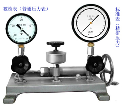 在實(shí)驗(yàn)室或計(jì)量室一般配合精密壓力表(精度較高可達(dá)到0.25級(jí))來(lái)檢測(cè)普通壓力表(精度為1.6或2.5)。